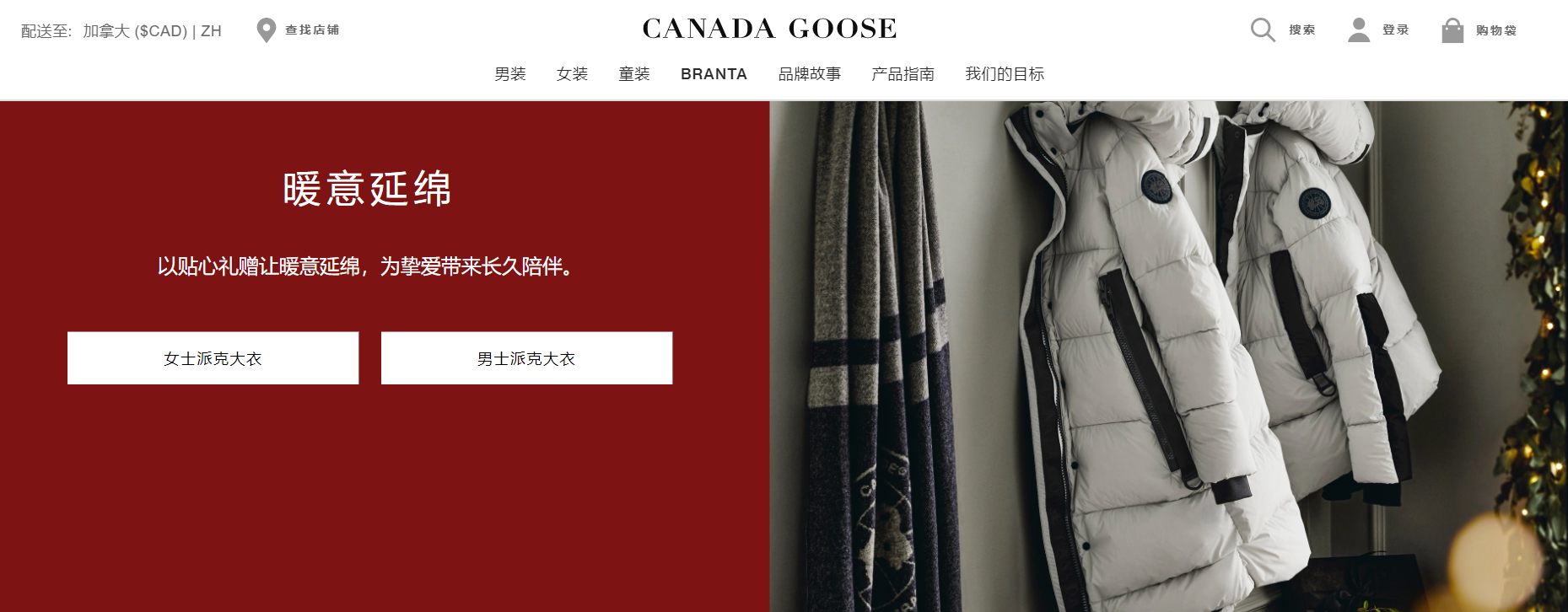加拿大国宝品牌Canada Goose(加拿大鹅),以制造极地防寒服装起家而闻名。保暖性极佳,做工细致,由于生产地只限于加拿大本国,加上采用了优质的白鸭绒及郊狼毛(乃至于北极狐毛)的领饰,加拿大鹅服装的售价一直居高不下。