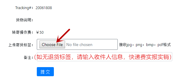 5.3提交转寄快递面单标签,如无标签,请备注收件人名字、电话、地址、邮编