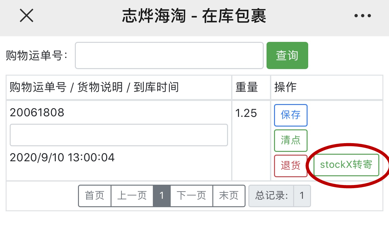5.2选中海外快递单号,点击“STOCKX转寄”